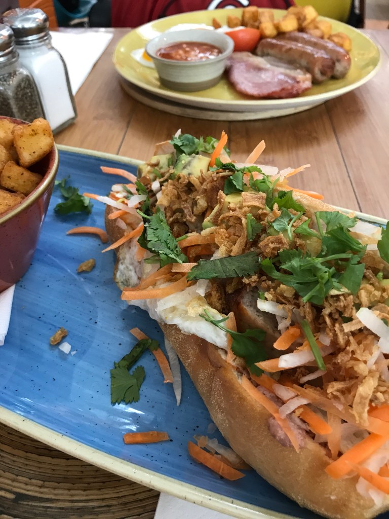I never expect much from airport food, but I’m always hopeful one day, something will surprise me, and The Giraffe World Kitchen did! Even though it was 5am, being up since departing the night before, I wasn’t in the mood for a traditional breakfast, I rarely am… so the breakfast “Bahn Mi” sounded right up my alley. It was actually pretty good… fresh and tasty and lighter than a typical breakfast sandwich.
