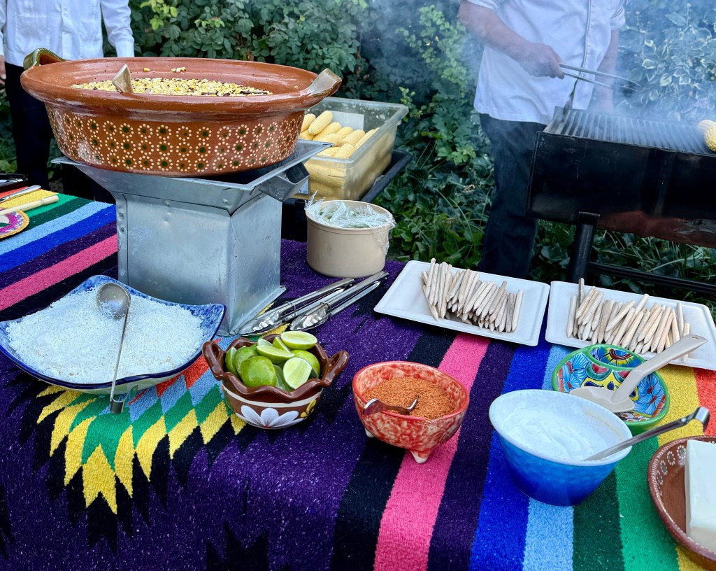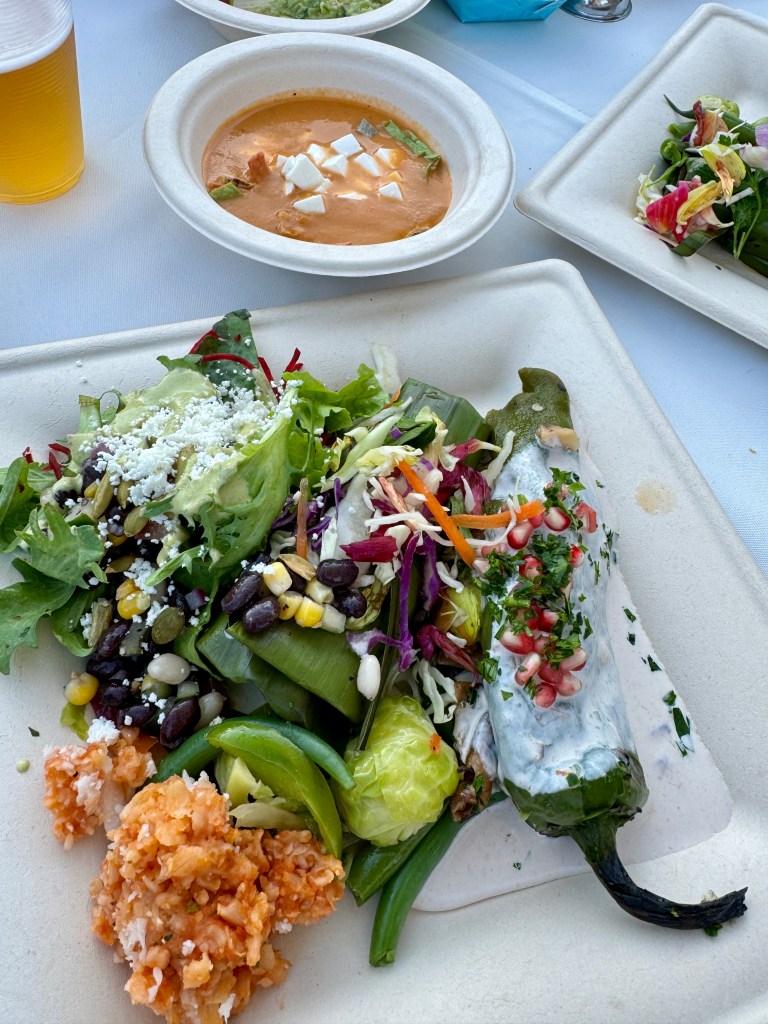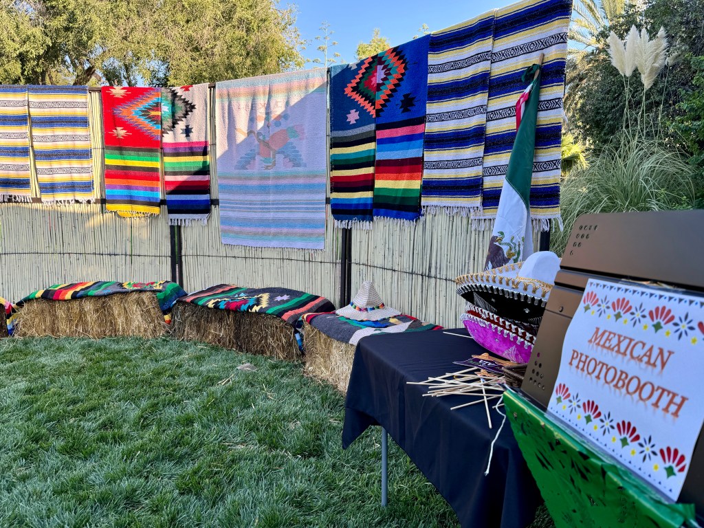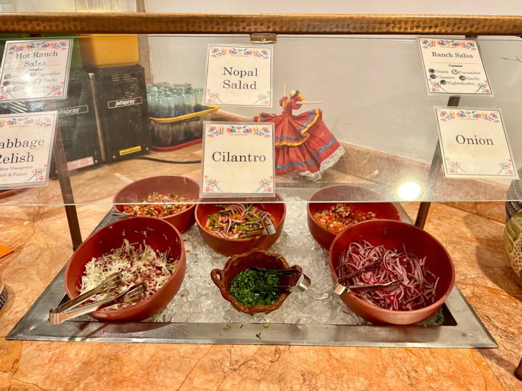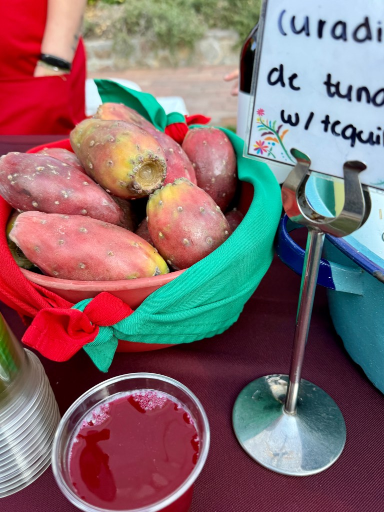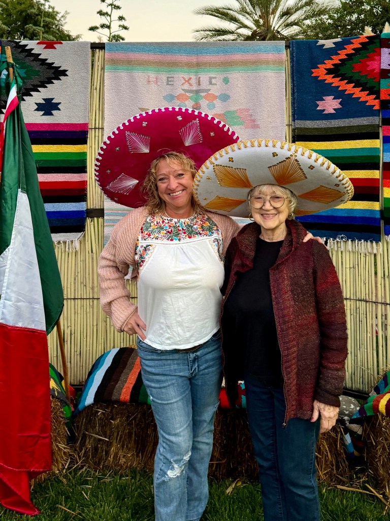 I arrived at my villa a few minutes longer than usual; Mom and I dressed and headed out. We were pleasantly surprised to find out that what we thought was just a small cocktail celebration was a full-on dinner event with beer, wine, mixed drinks, a Mercado sale, a Mexican photo booth, a fashion show, and more. Usually, we prefer to sit at a 2-top for dinner and keep to ourselves, too tired by that time of day for much more “peopling,” lol. But on this occasion, with only large round tables available, we took our seats. As the evening progressed and all got to know each other, we were delighted to be seated with the group we were paired with, such fun and friendly people, and we had a truly wonderful evening. Plus, I got to see Roxanne again; she worked at the Bazar and got to know me last year; she saw me and said, “You were here last year taking those photos at sunset last year”.. I showed her how to do a time-lapse, and she loved it.